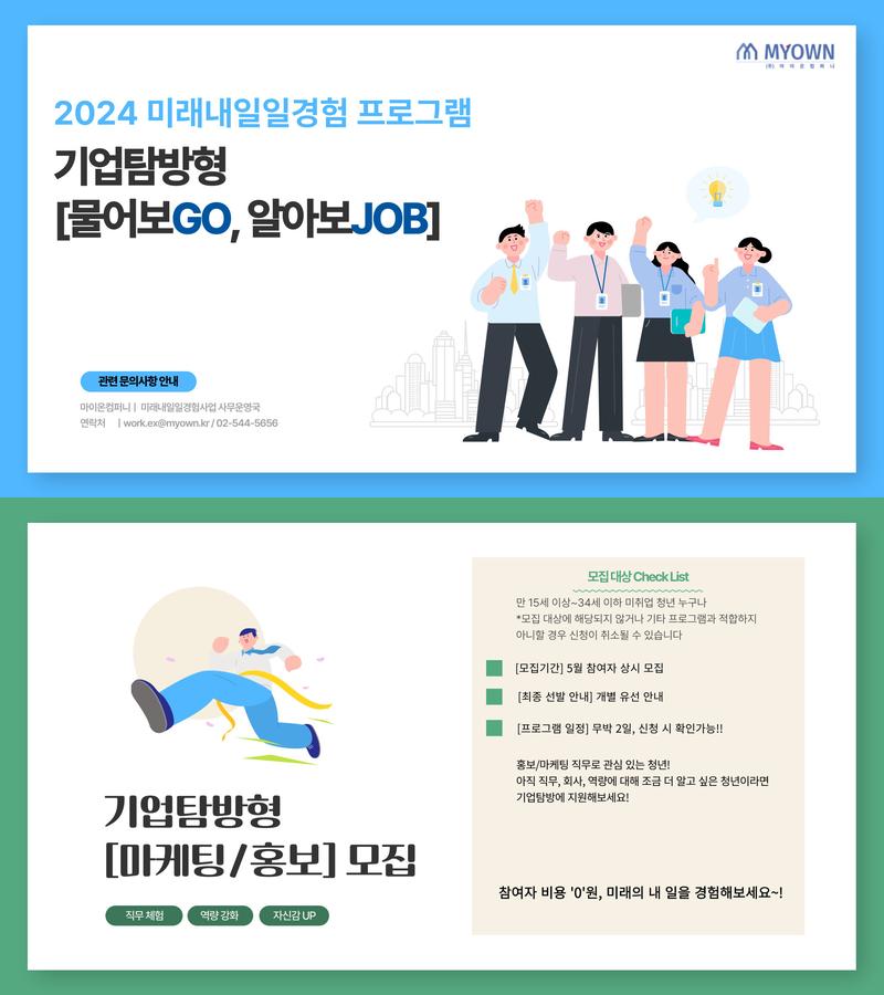 고용노동부(운영기관 마이온컴퍼니)에서 진행하는 일경험사업 "기업탐방 프로그램"에 참여하실 분들을 모집합니다!