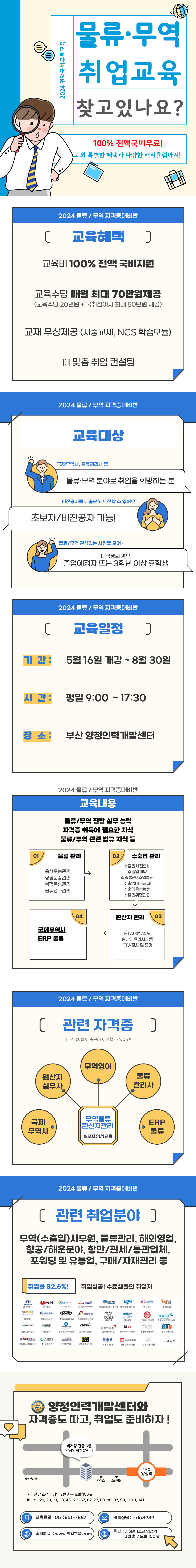 [부산/물류무역] 전액국비무료/국제무역사/물류관리사/무역영어/원산지실무사 등 취준생 모집