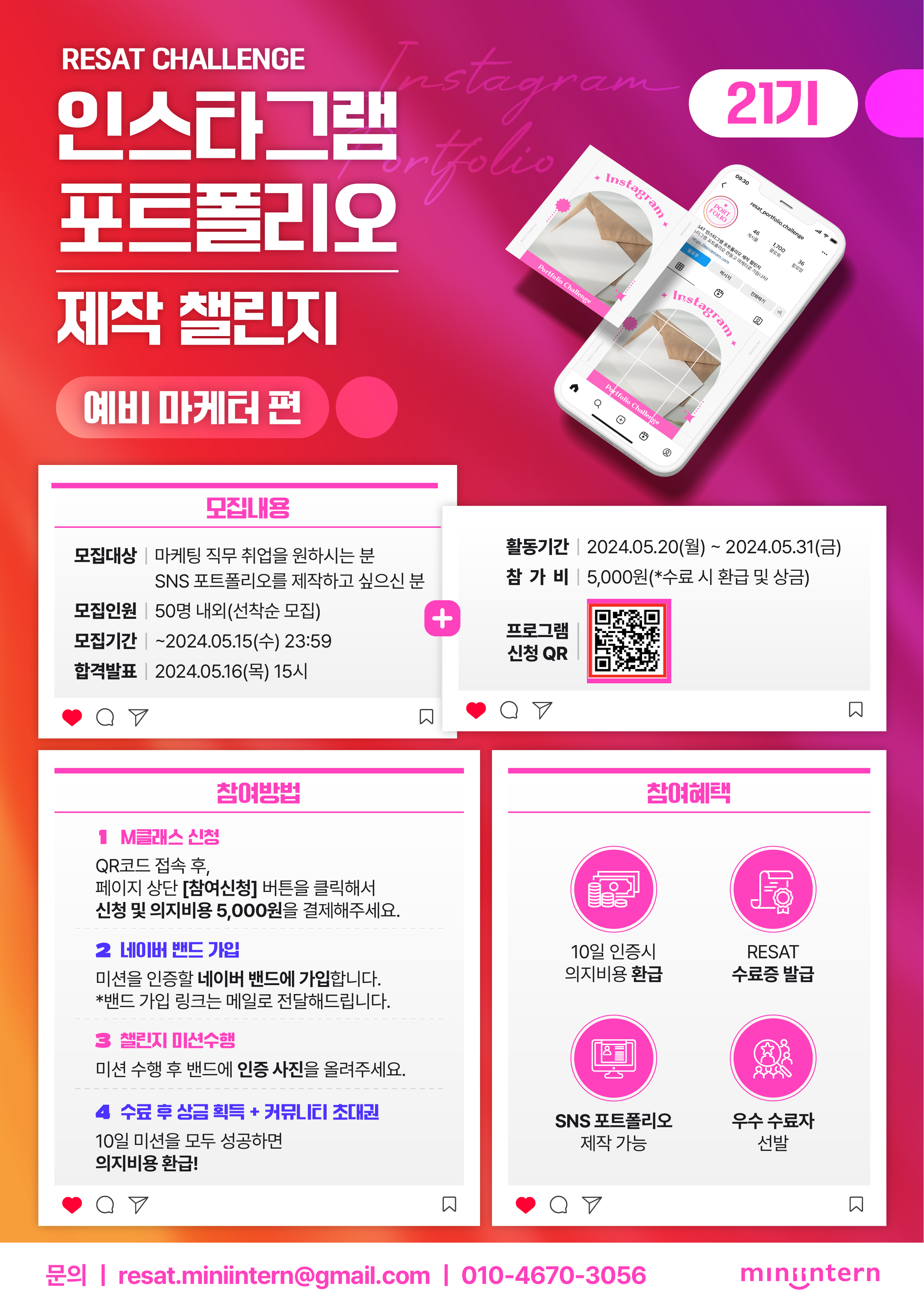 <RESAT 인스타그램 포트폴리오 제작 챌린지 21기>와 함께 하세요!