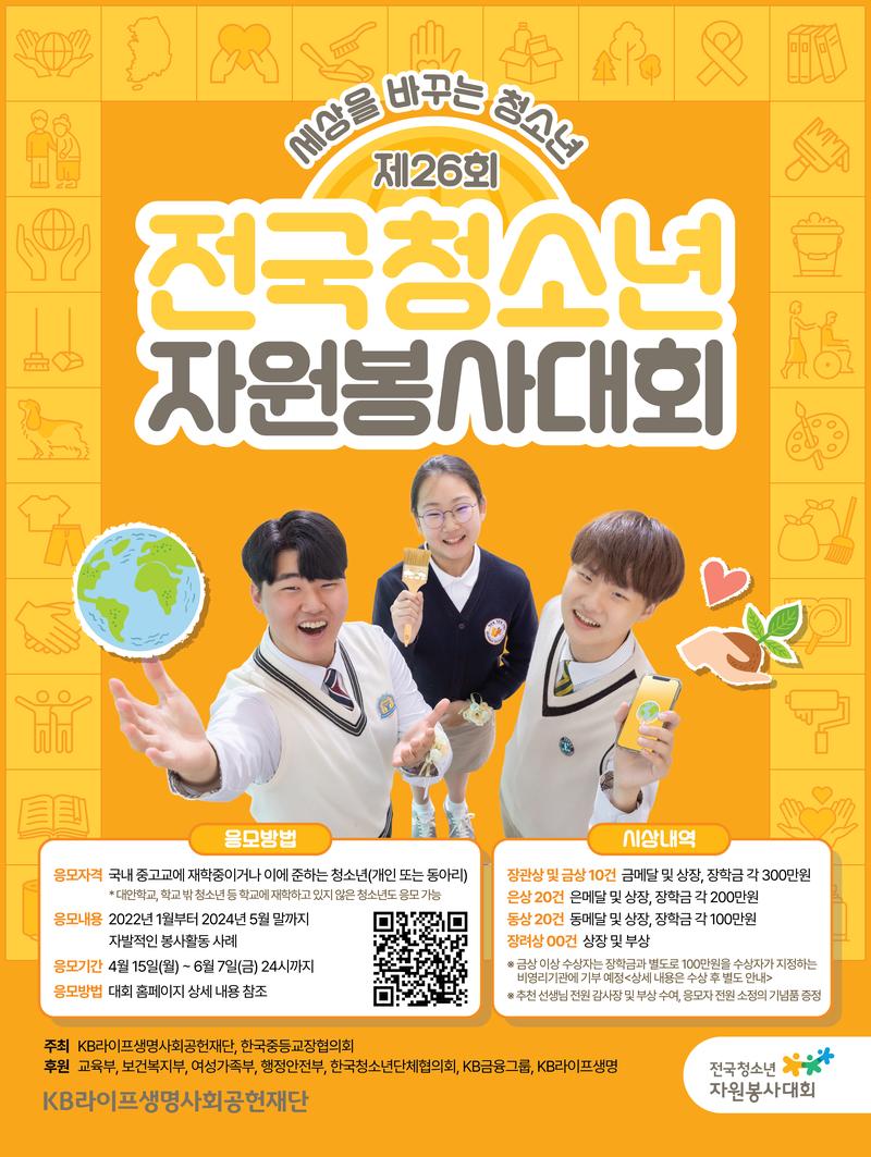2024년 제26회 전국청소년자원봉사대회 응모 시작!