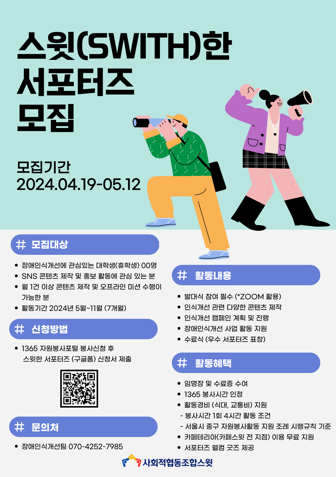 사회적협동조합 스윗에서는 2024년 스윗(Swith)한 서포터즈를 모집합니다.