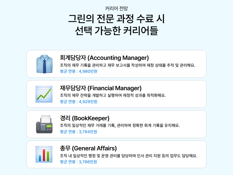 🚥 취업분야 : 관공서, 일반기업 총무사무원, 회계 사무원 등
