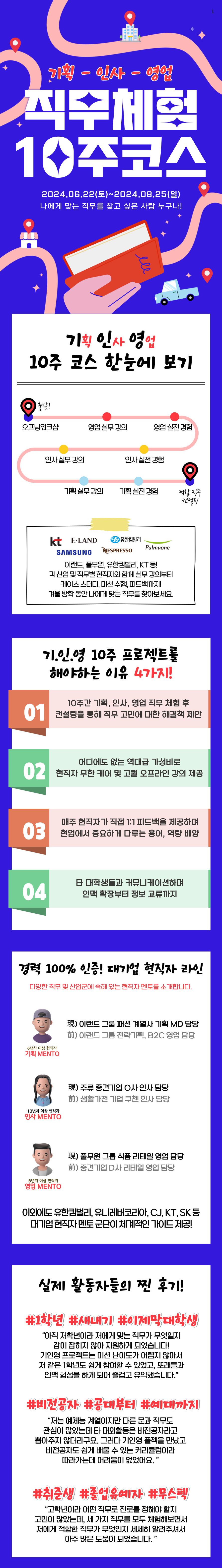 안녕하세요:-) 단 10주만에 "기획-인사-영업" 세가지 직무를 체험하는 "기.인.영 프로젝트"의 담당자입니다.