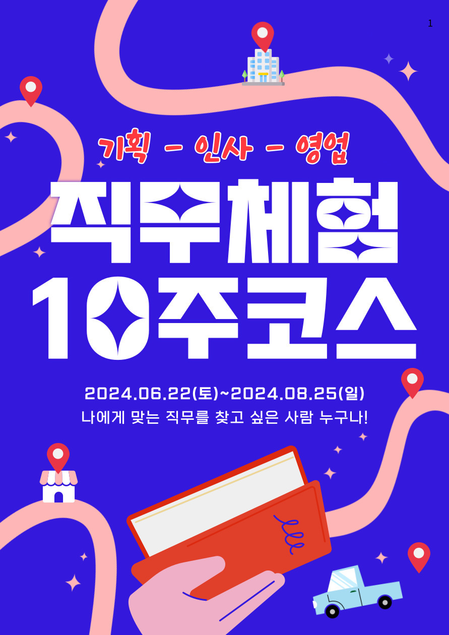 본 프로젝트는 문과에서 가장 인기가 많은 TOP 3 직무를 한번에 맛볼 수 있는 실무체험 활동으로, 프로그램을 이수하고 증빙 가능한 수료증까지 발급되어 본 활동을 이력서와 포트폴리오에도 작성할 수 있습니다.