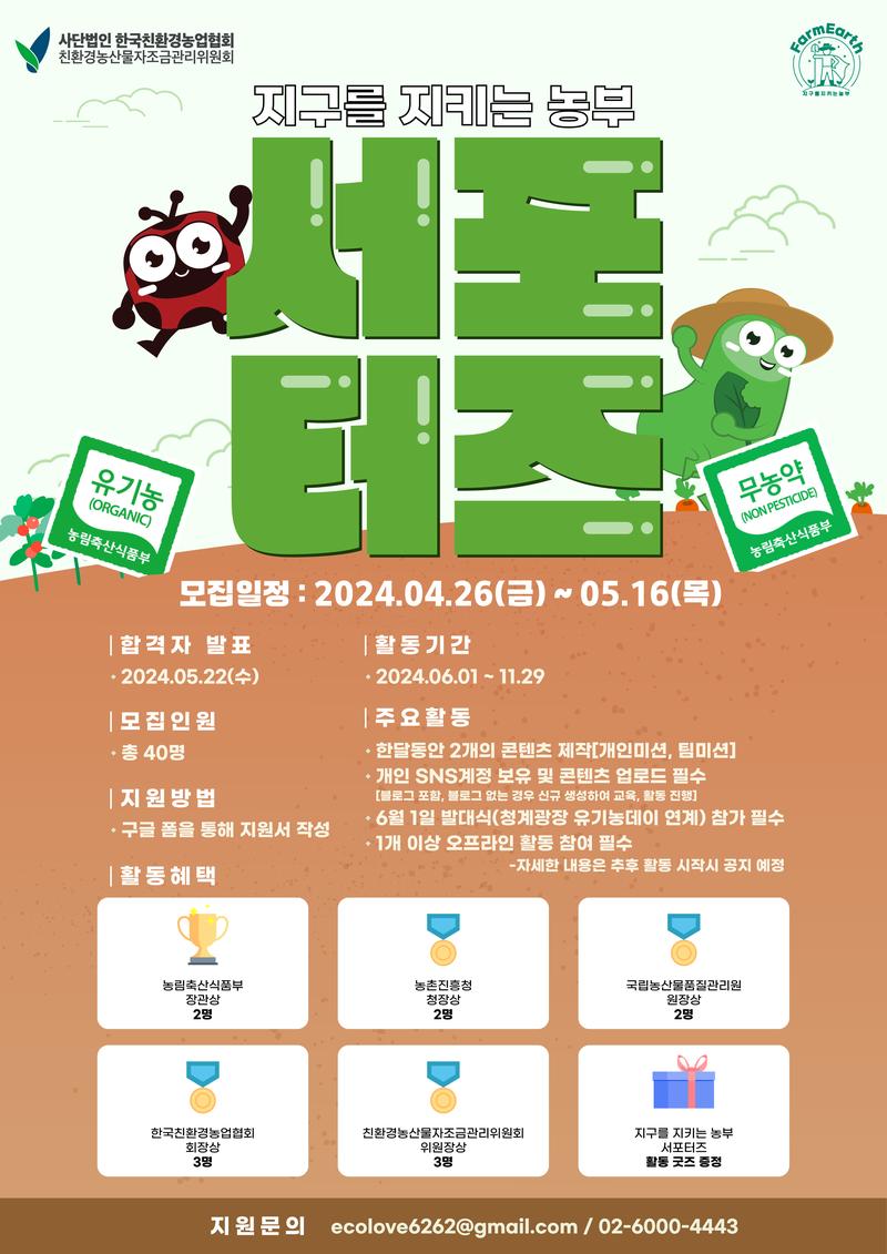 친환경농산물자조금에서 '지구를 지키는 농부 서포터즈 3기'로 활동할 대학생을 모집합니다!