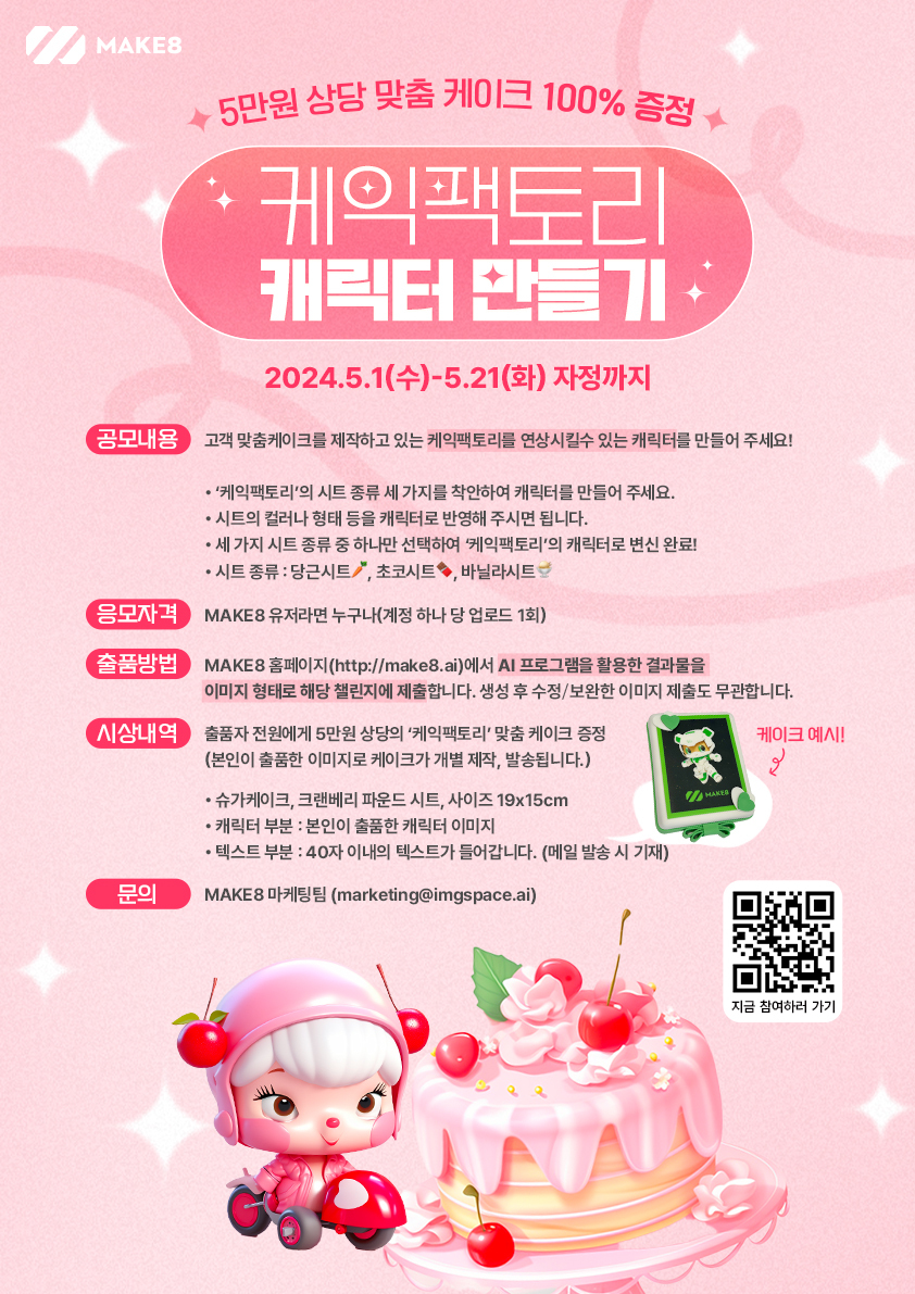 출품자 전원에게 5만원 상당의 ‘케익팩토리’ 맞춤 케이크 증정(본인이 출품한 이미지로 케이크가 개별 제작, 발송됩니다.)