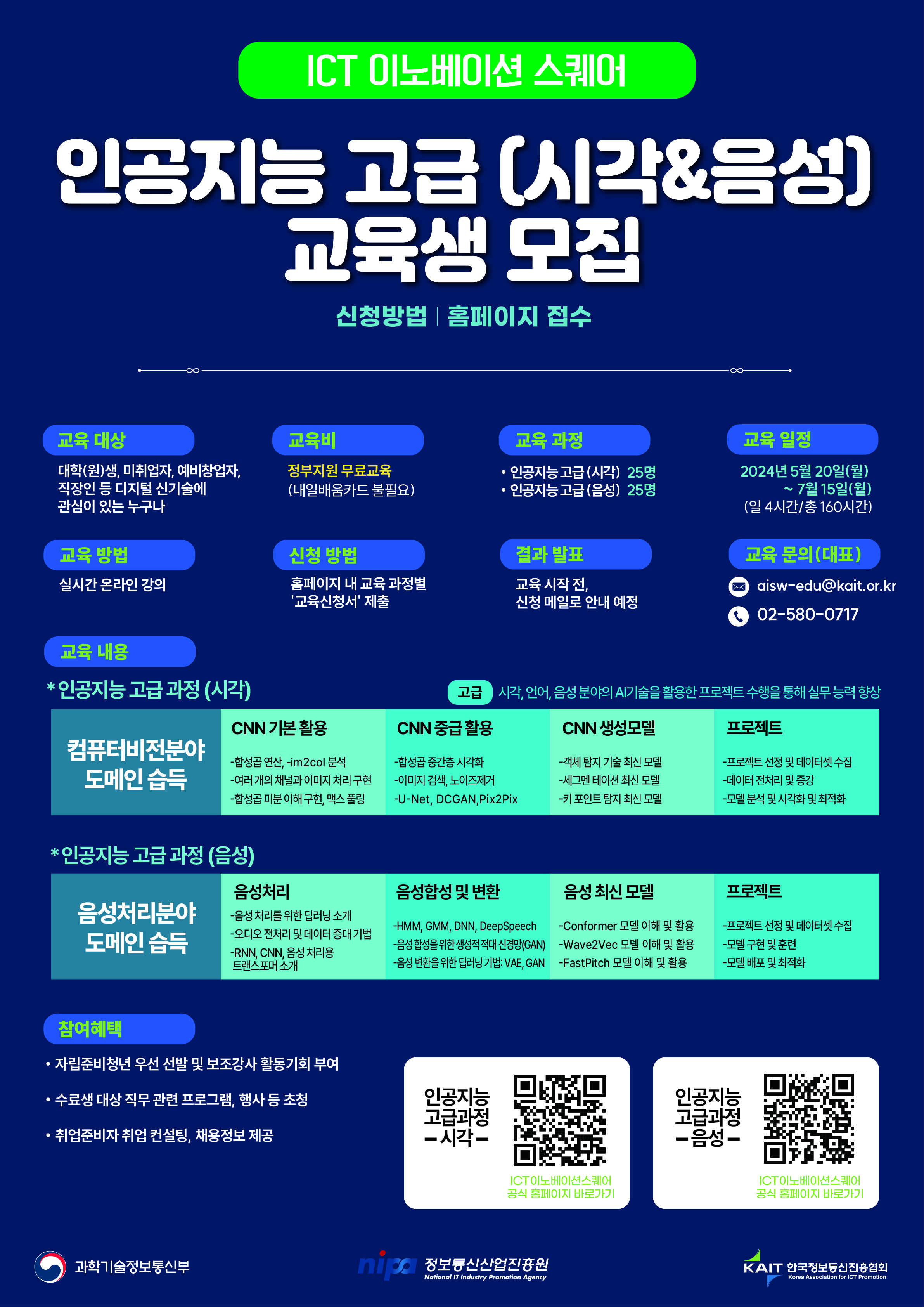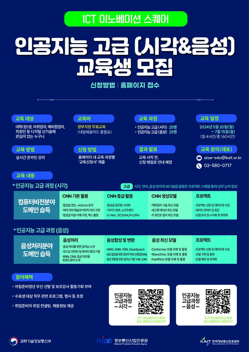 ※ 문의: 한국정보통신진흥협회 디지털신기술교육 사무국 / 02-580-0717 / aisw-edu@kait.or.kr