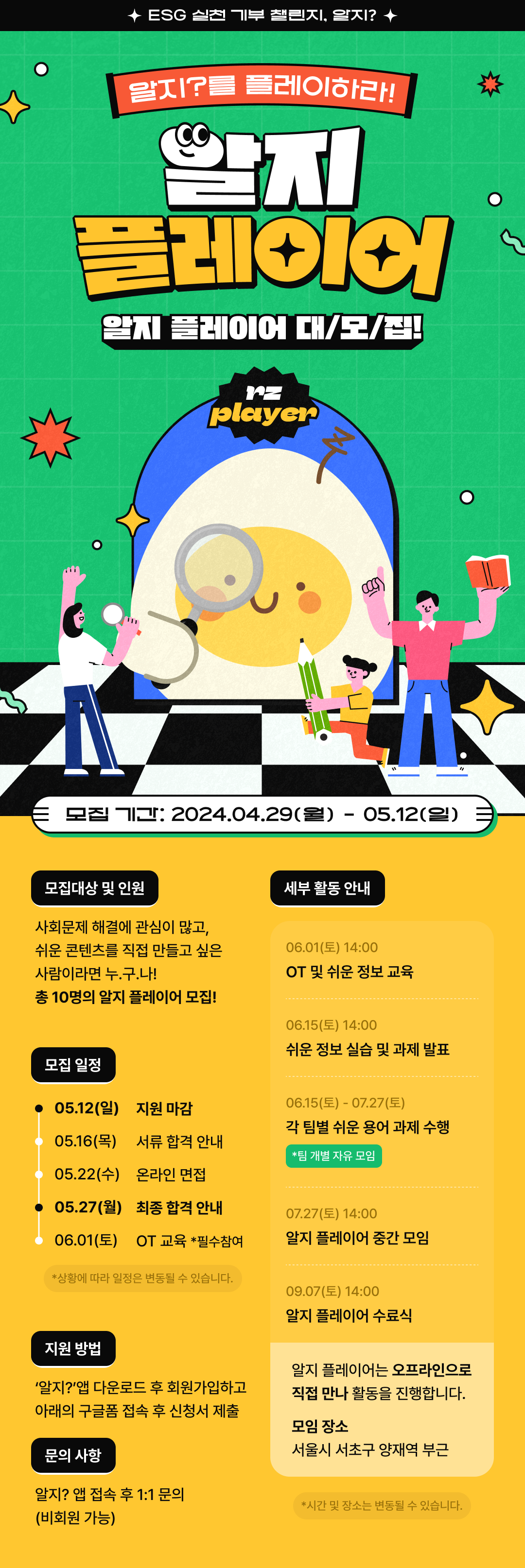 -알지? 앱 다운로드 후 회원가입하고 구글폼을 통해 지원