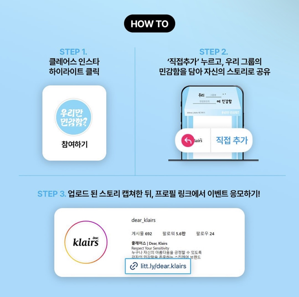 -참여 스토리 캡처 후 클레어스 프로필 내 링크를 통해 응모폼 작성
