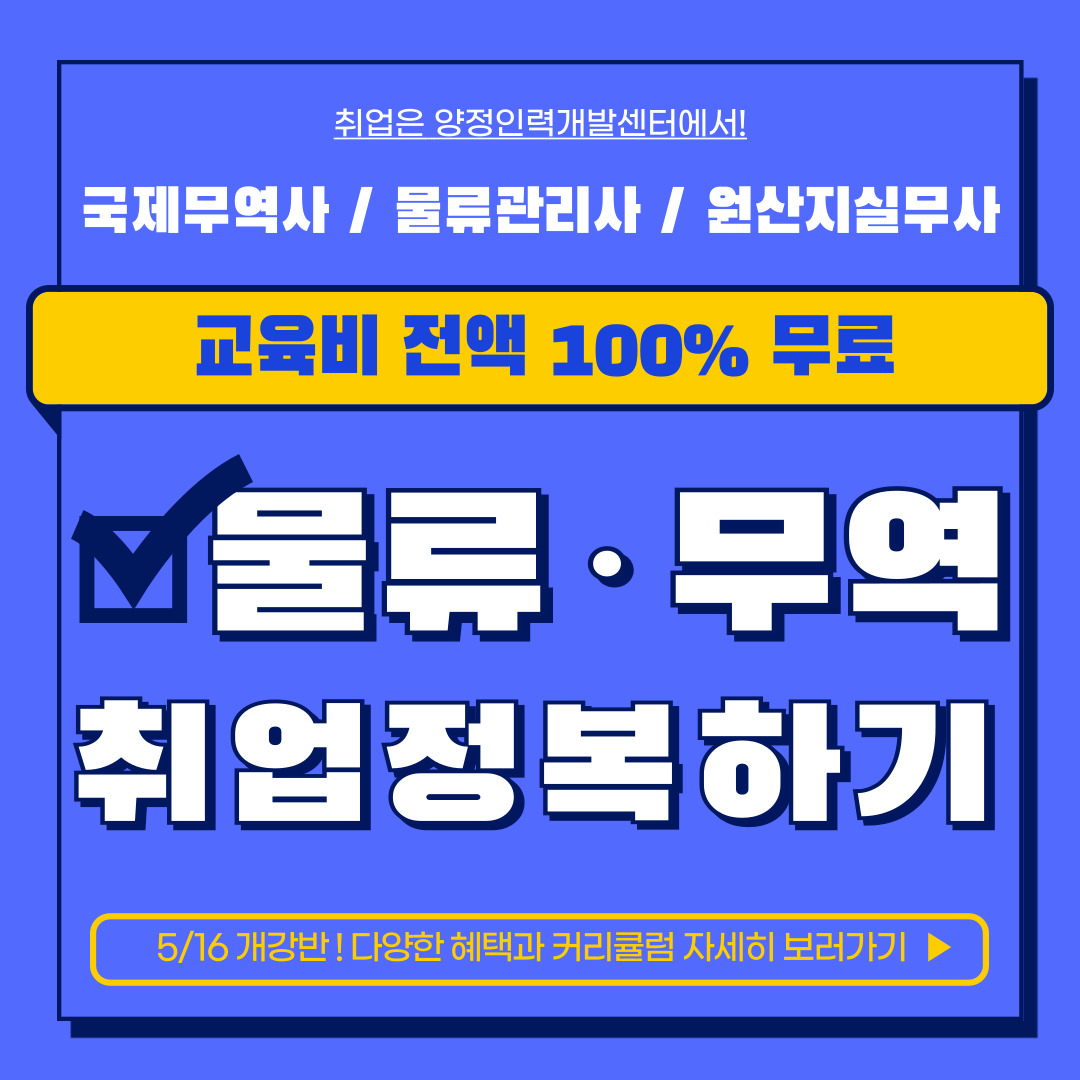 [부산/전액무료]물류/무역 전액국비 자격증대비&취업준비생 모집(매월 최대 70만원 제공)