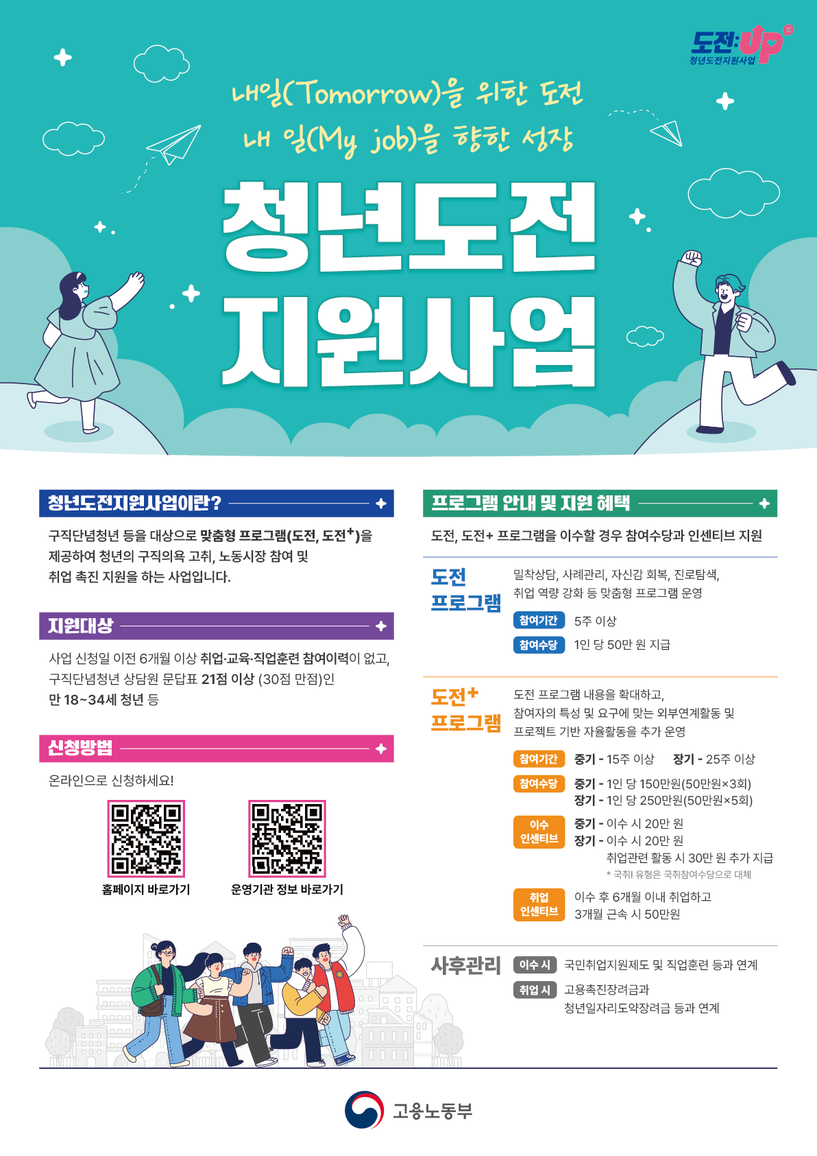 - 구직단념청년 등을 대상으로 맞춤형 프로그램(도전, 도전+)을 제공하여