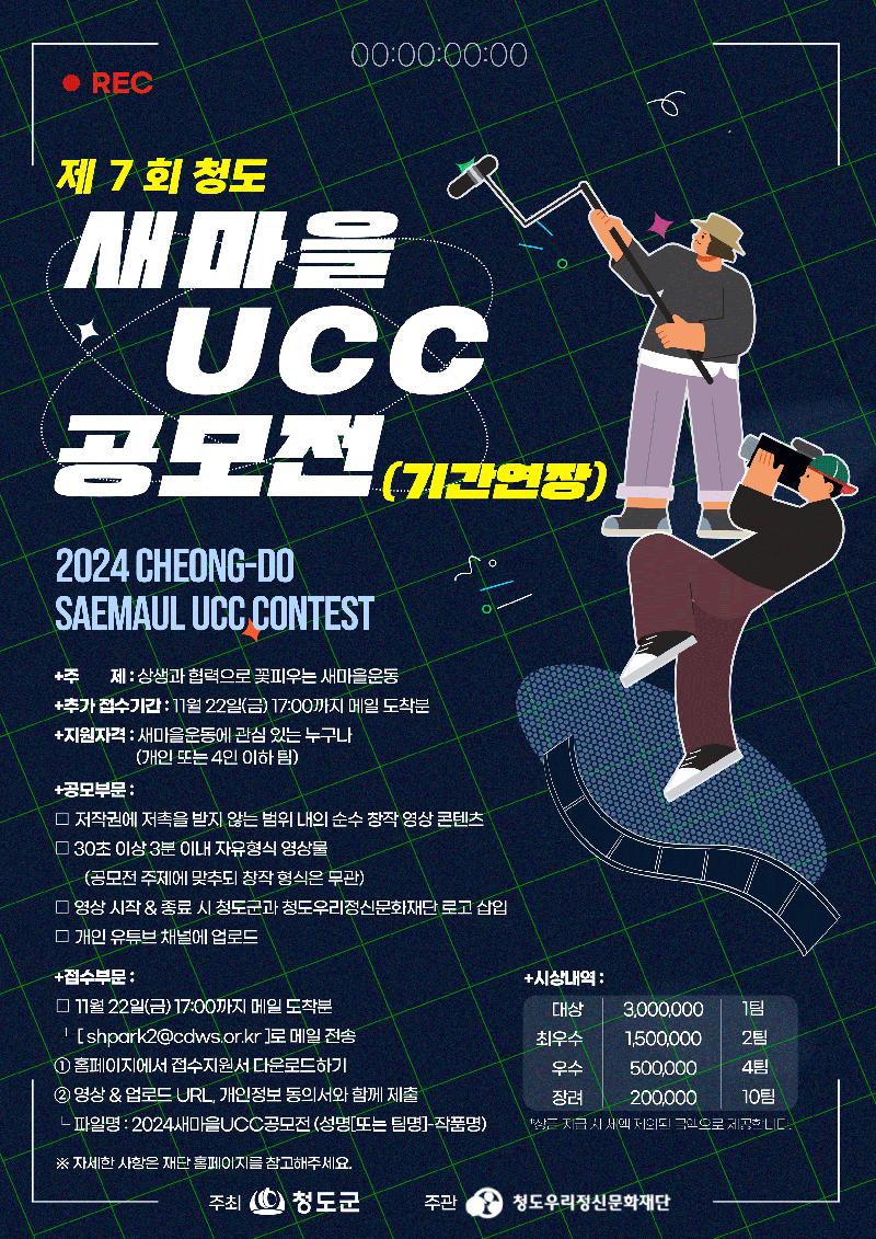 ※ 작품 업로드 시 : 제7회 새마을UCC공모전<작품명> 로 게시 *예) 제7회 새마을UCC공모전<새마을 미래>