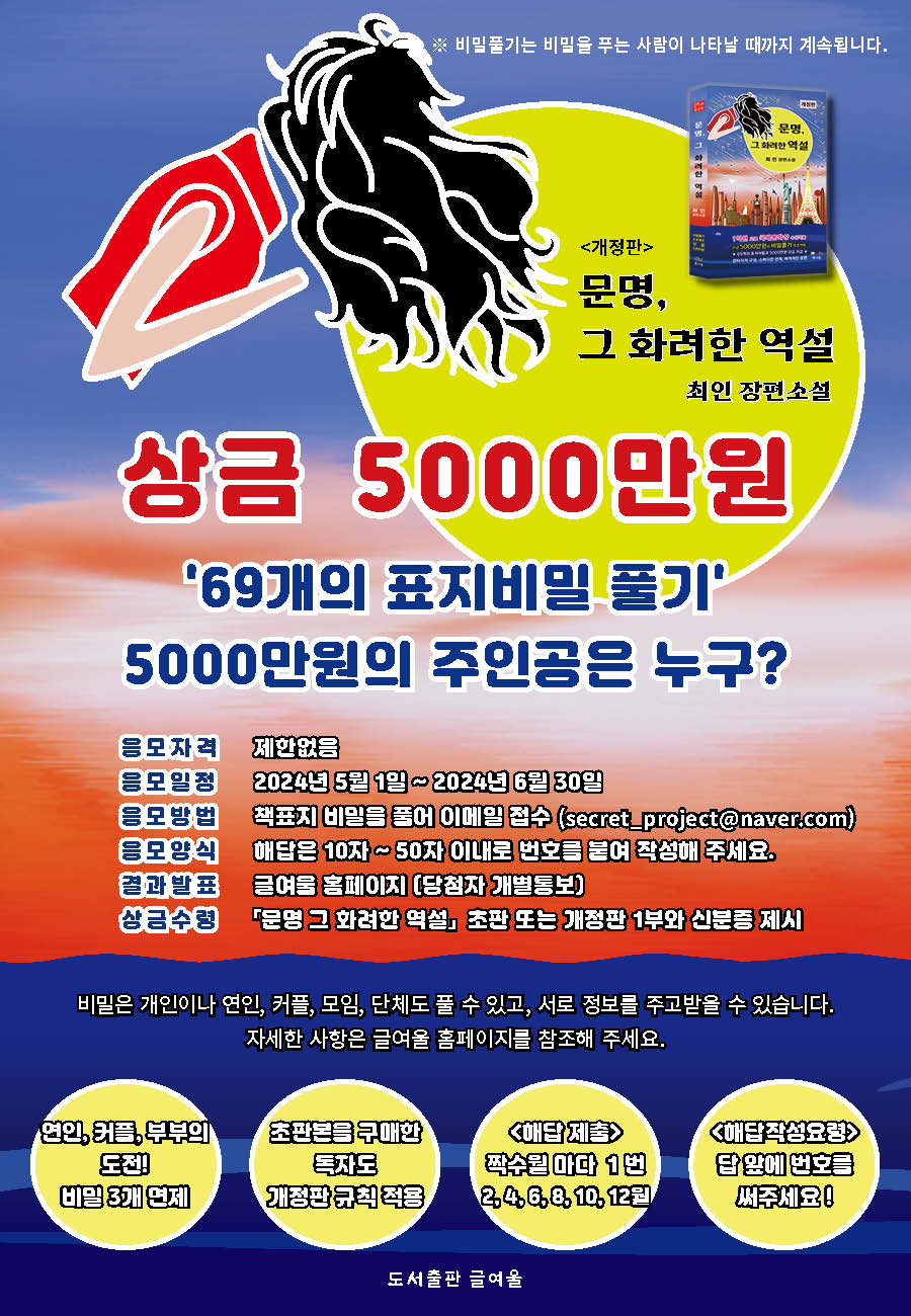 《문명, 그 화려한 역설》을 읽고 표지에 숨겨진 69개의 비밀을 풀어 이메일로 제출합니다.