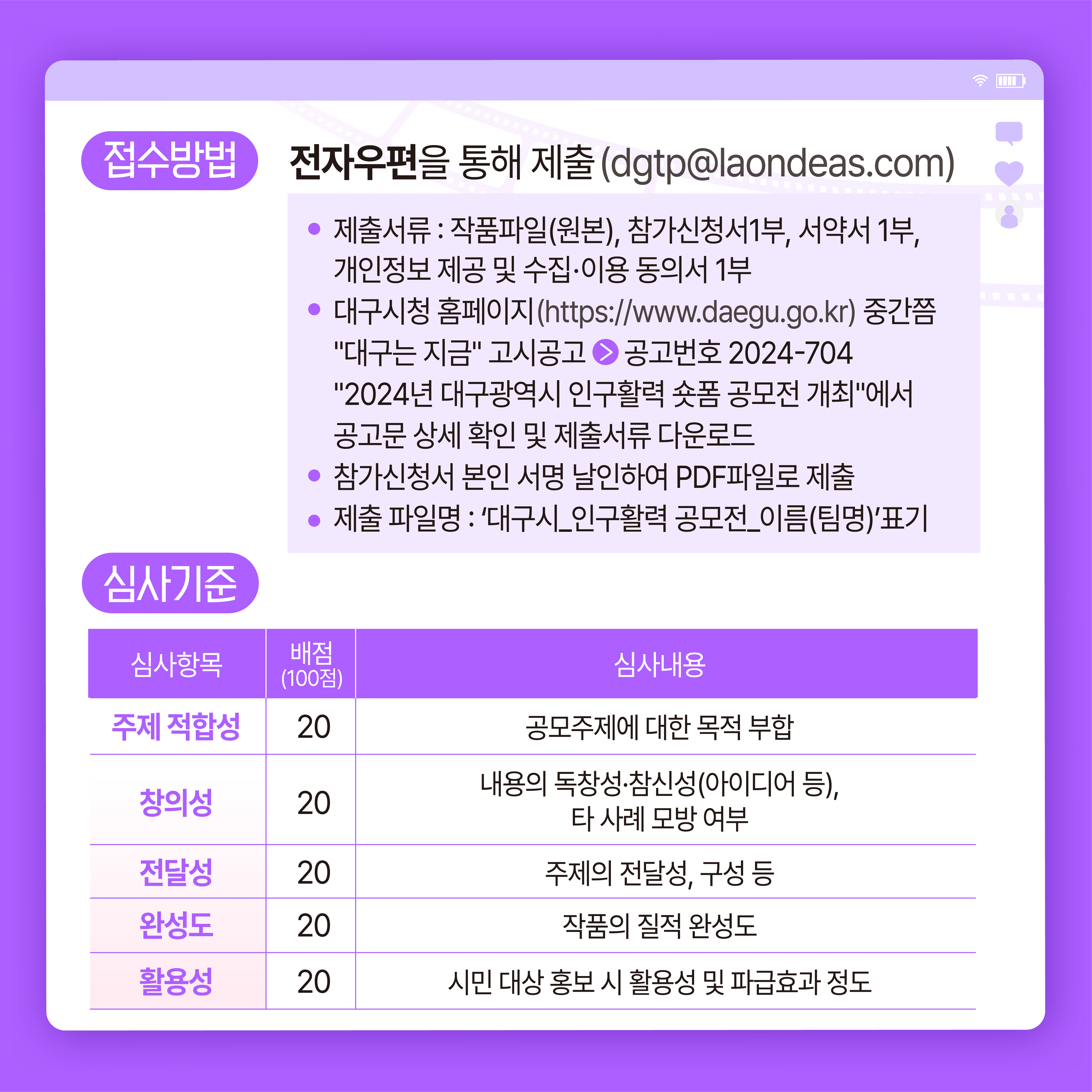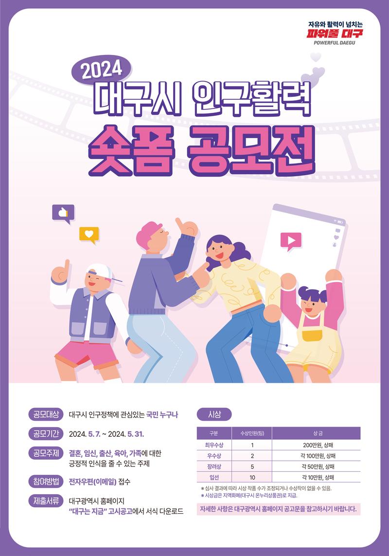 👨❤️👨2024 대구시 인구활력 숏폼 공모전 개최!👨❤️👨