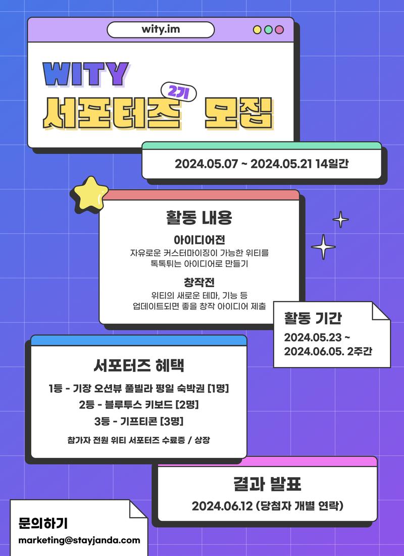 ※문의사항이 있을 경우 marketing@stayjanda.com 혹은 위티 카카오 채널로 연락주시기 바랍니다.