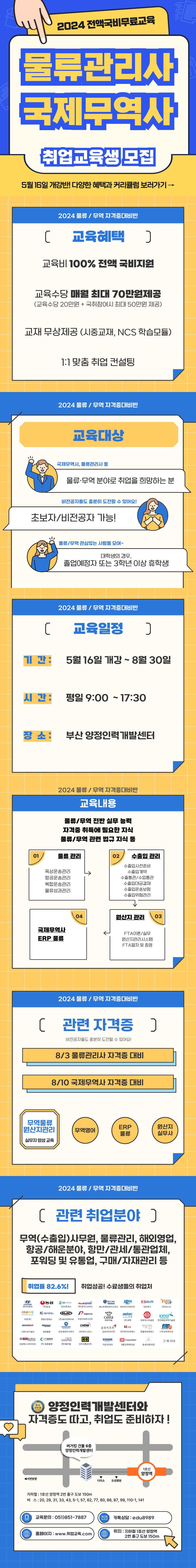 [부산/전액무료] 국제무역사, 무역영어, 물류관리사 등 물류/무역 취준생 모집 !!