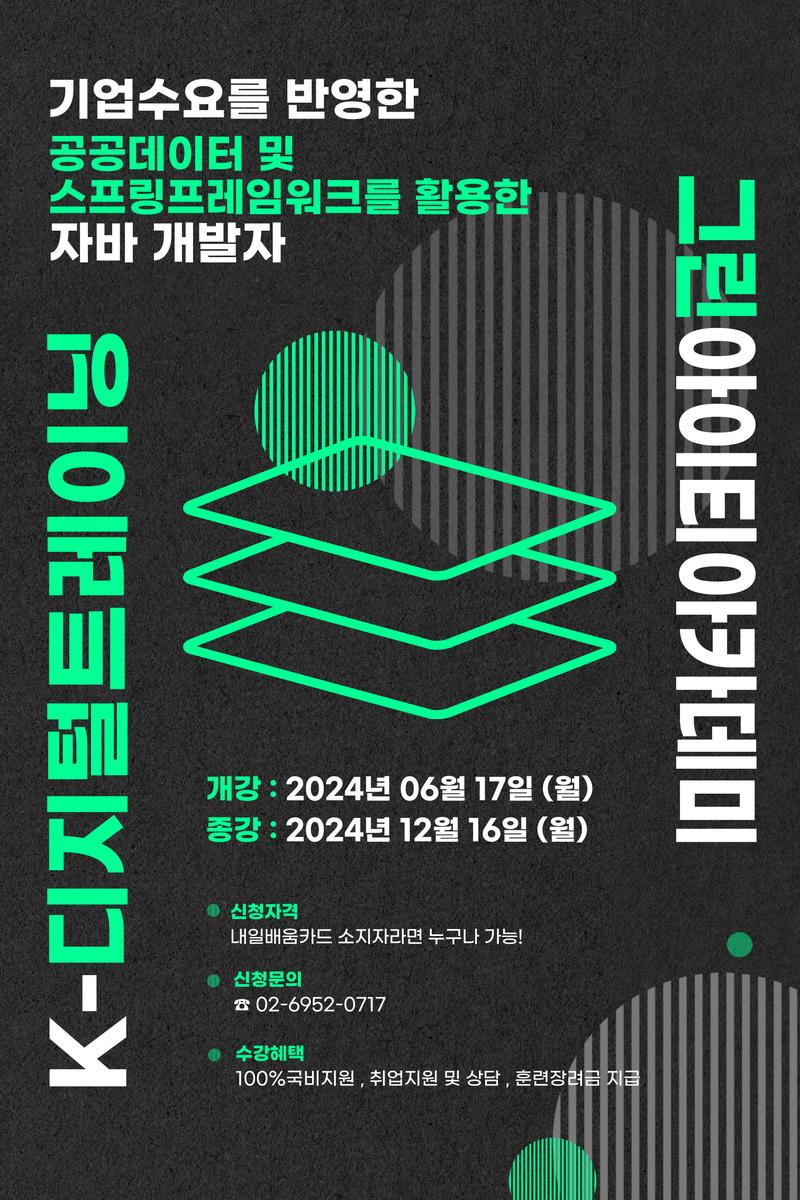 - K-Digital Training은 우리나라 디지털, 신기술 분야에서 핵심적인 역할을 담당할 인재를 양성하기 위해 고용노동부와 함께하는 훈련과정이며, ‘국민내일배움카드’만 발급받으면 정부의 전액 지원으로 무료 수강할 수 있습니다.