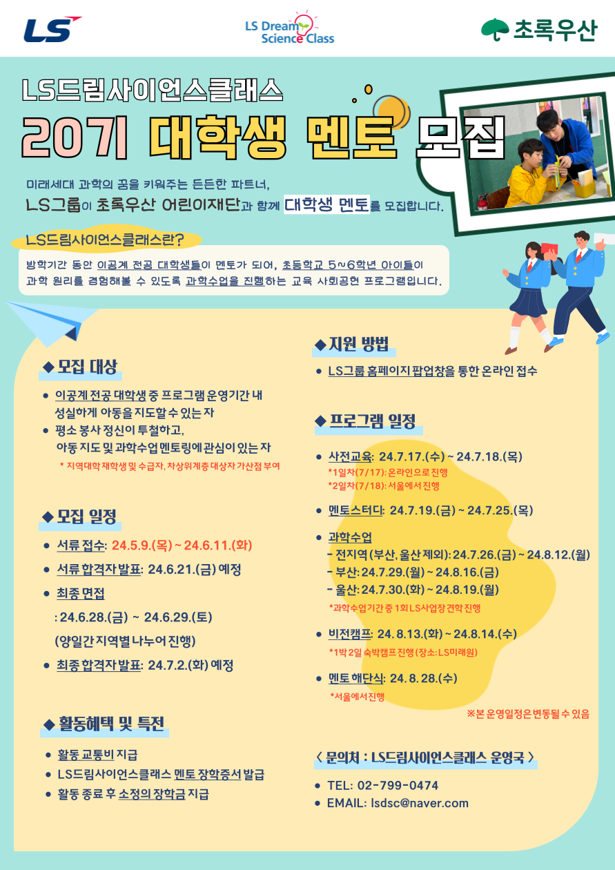 : LS드림사이언스클래스 운영국 (☎: 02-799-0474 / e-mail: lsdsc@naver.com)