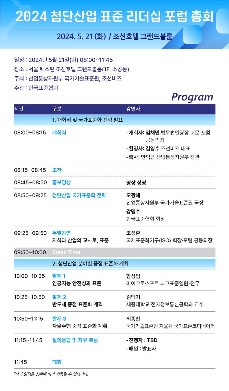 2024 첨단산업 표준 리더십 포럼 총회에 많은 관심 부탁드립니다!