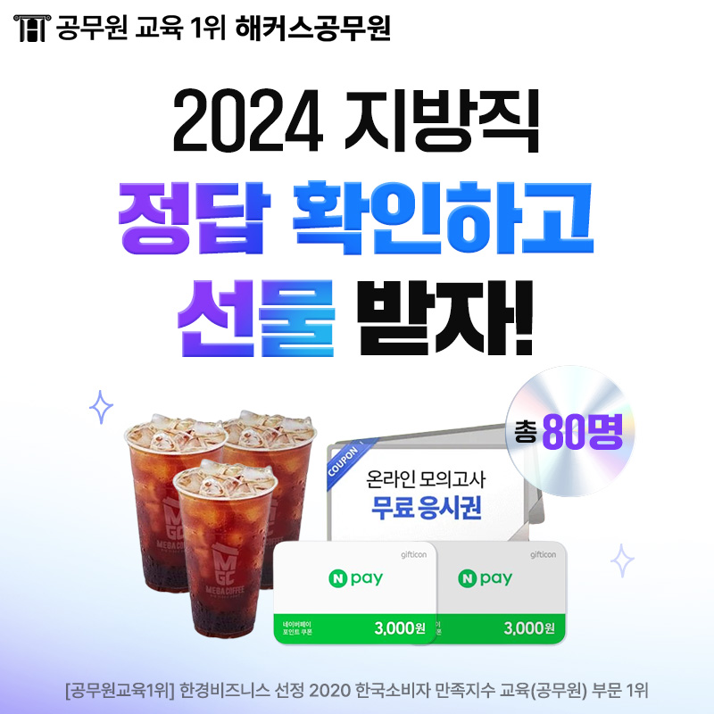 [이벤트] 2024 지방직·서울시 9급 가답안/정답 확인하고 간식 받자!