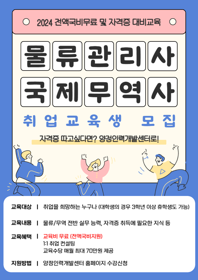 [부산/무역취업]★전액국비★물류관리사/국제무역사/ERP물류 등 자격증대비&취업준비생모집