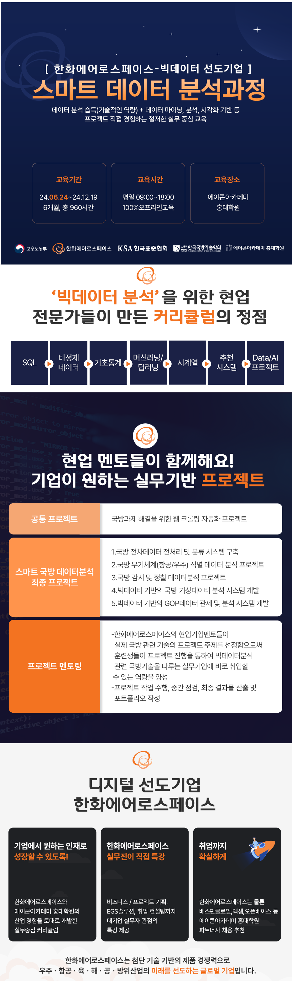 [웹개발국비과정] 한화에어로스페이스 스마트 데이터 분석과정_2기