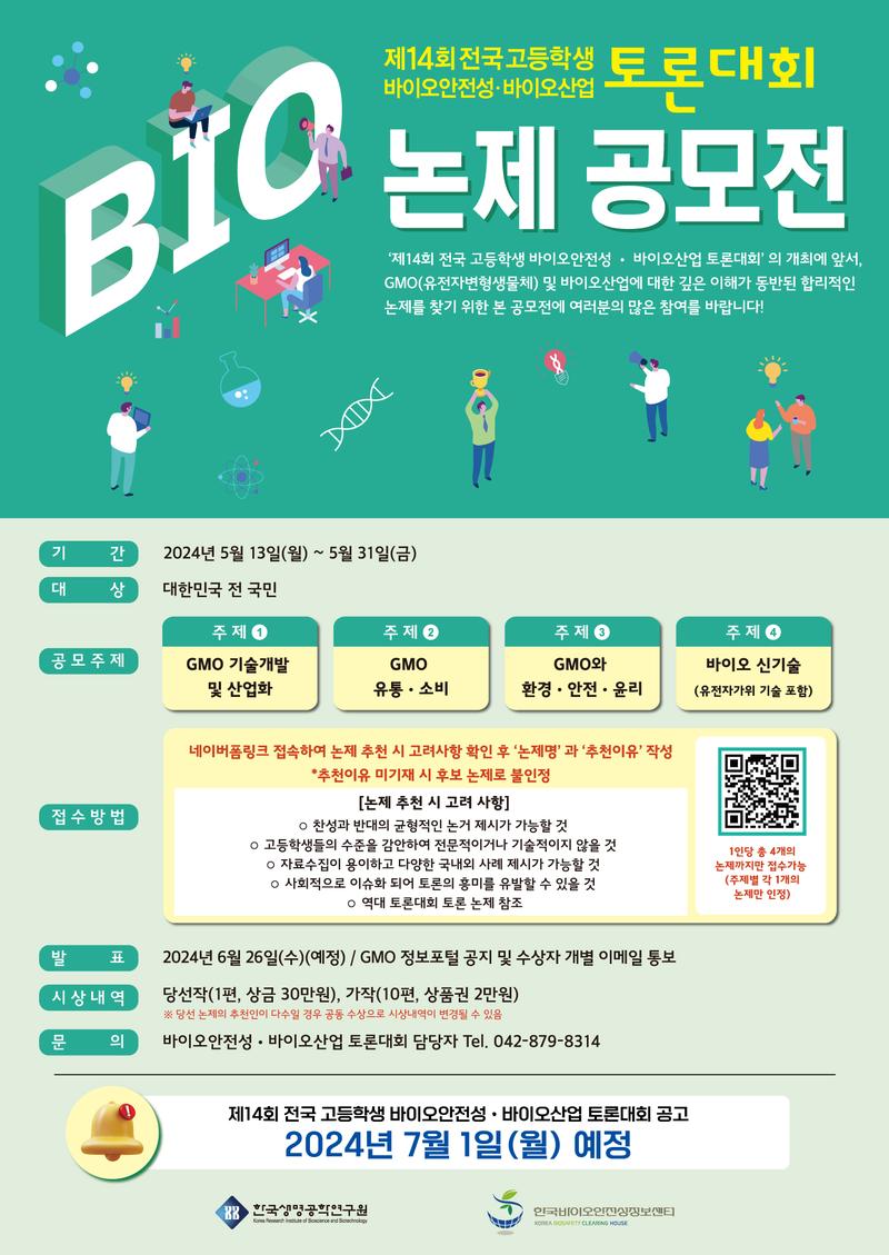 '제14회 전국 고등학생 바이오안전성 · 바이오산업 토론대회' 의 개최에 앞서,