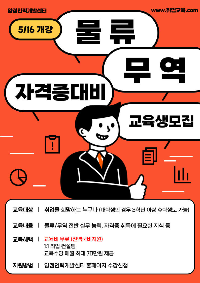 [부산/무역취업]★전액국비★물류/무역 자격증대비&취업준비생모집 (매월70만원교육수당 제공)