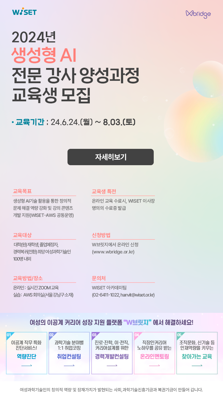 여성과학기술인에게 생성형 AI(AWS GenAI활용)기술을 활용하여 창의적인 문제해결 역량 강화를 지원함