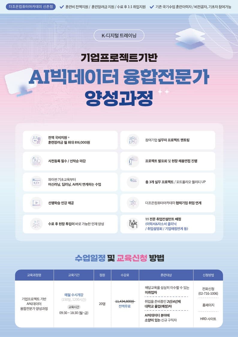 ✅ 포인트1, 국가지원금으로 11,434,800원 전액 무료로 수강가능! (국민내일배움카드 발급 필수)