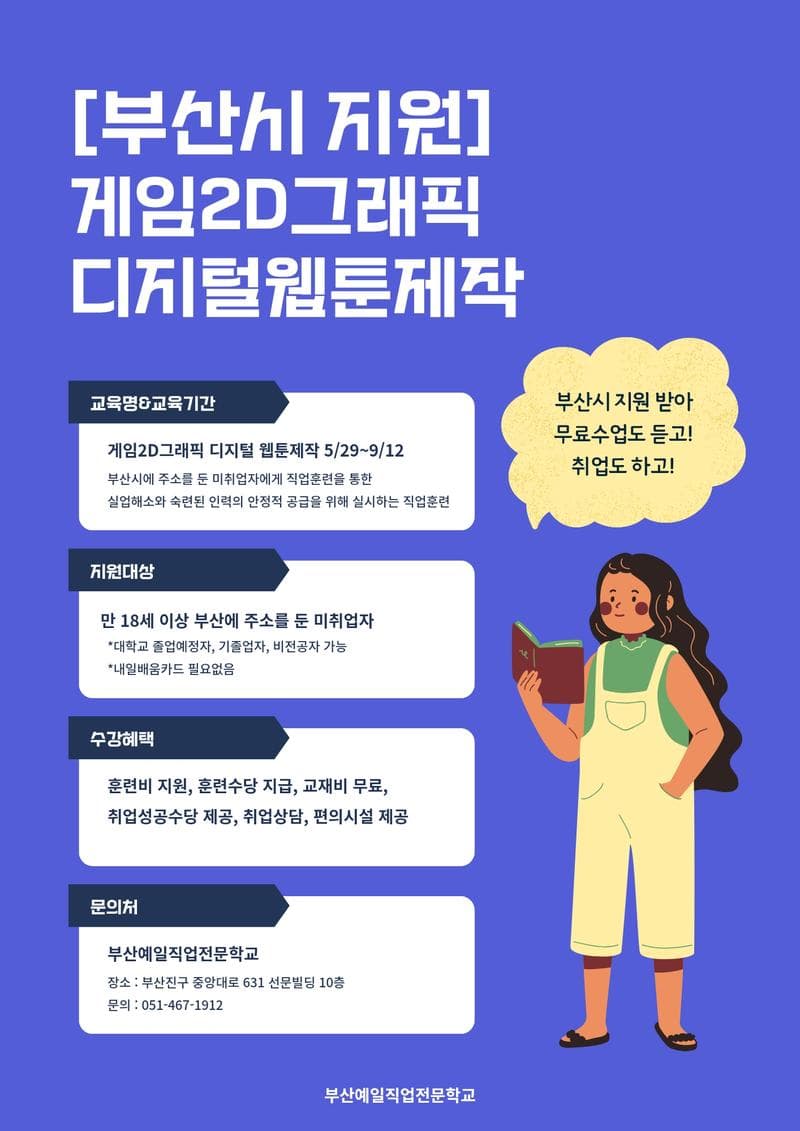 [★부산시지원] 게임2D그래픽,디지털웹툰제작 교육생모집 ~5/29