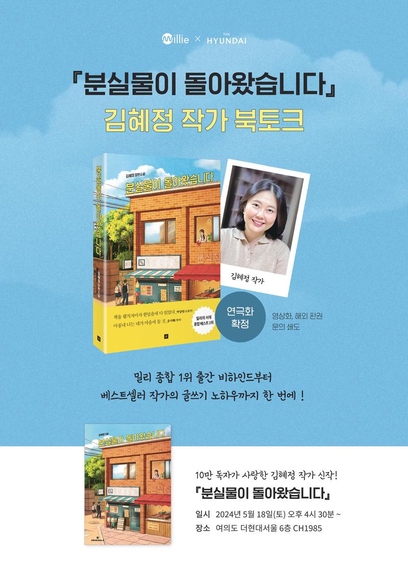 - 북토크 장소 : 더현대서울 6층 CH1985 (서울 영등포구 여의대로 108)