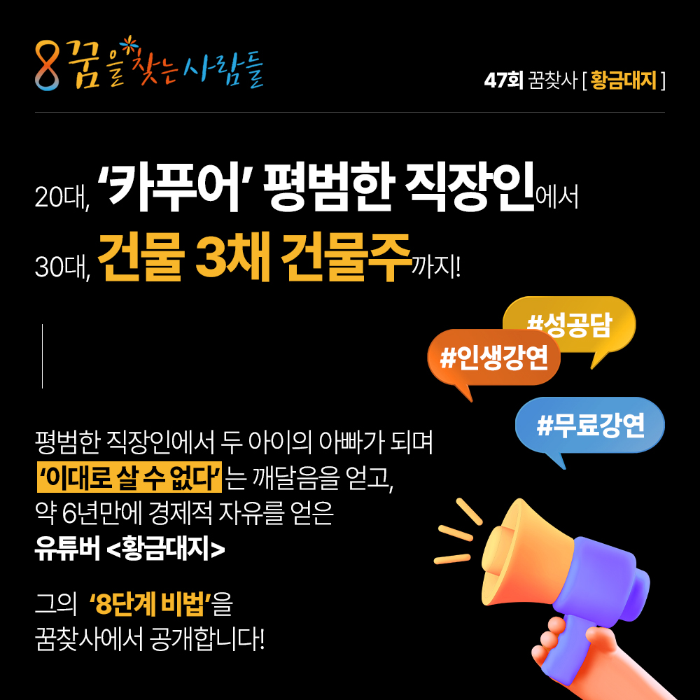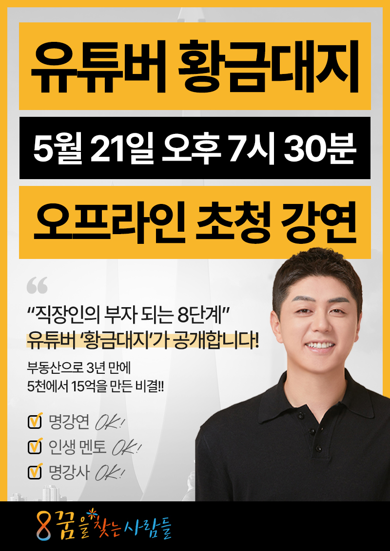 강연은 5월 21일 화요일 오후 7시 30분 꿈찾사 강연장에서 시작합니다!