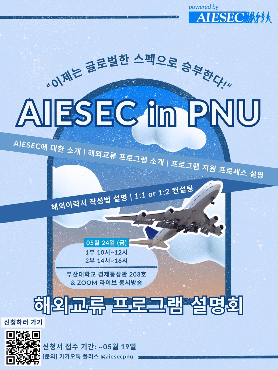 자세한 정보는 네이버 블로그 AIESEC in PNU 또는 카카오톡채널 @aiesecpnu를 방문해주세요!