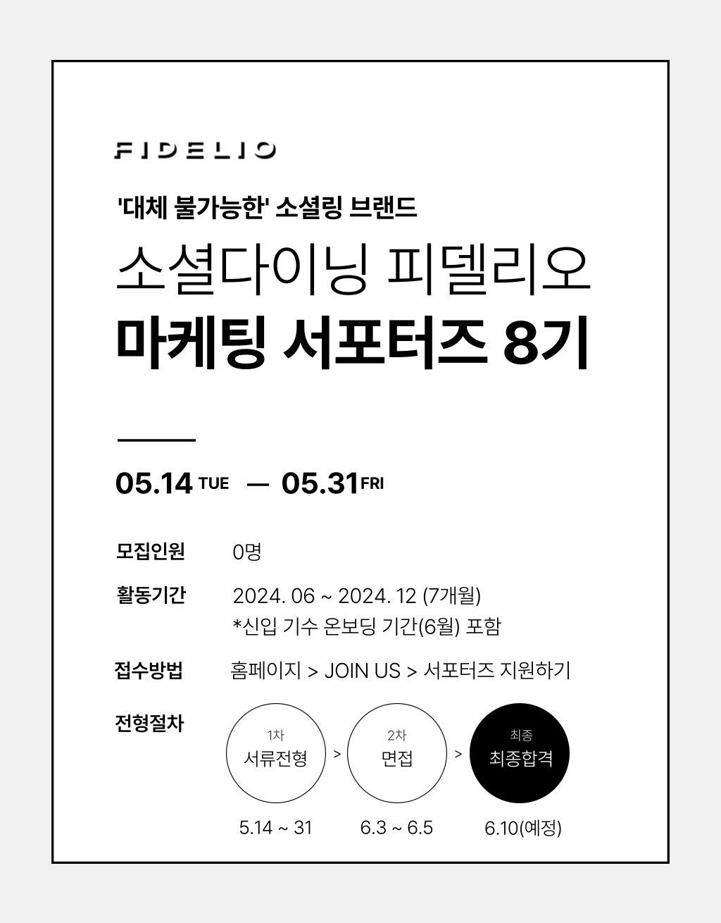서류 전형 : 5월 14일(화) ~ 31일(금)