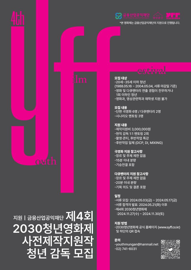 제4회 2030청년영화제 사전제작지원작 청년 감독 모집🎥
