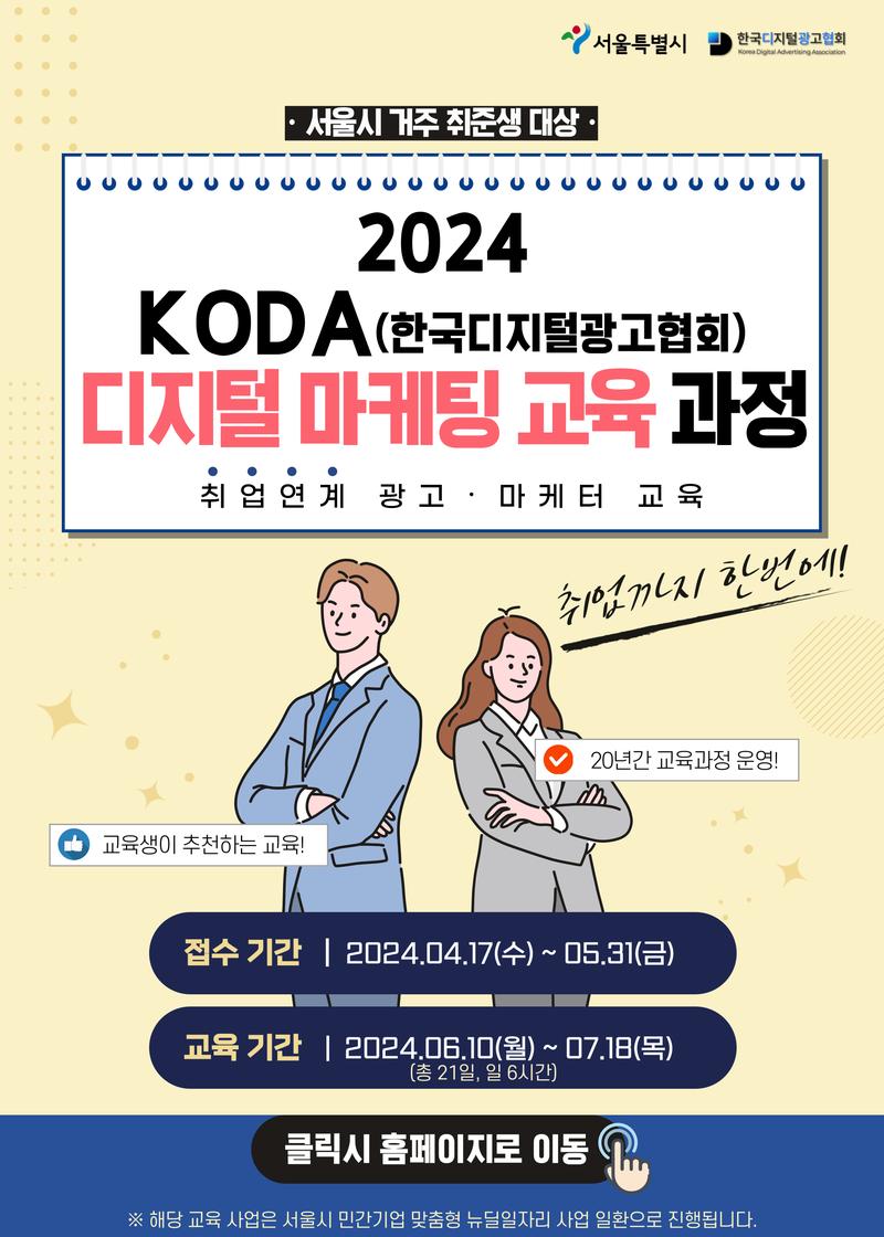 서울특별시가 주최하고 한국디지털광고협회가 주관하는 <2024 퍼포먼스브랜딩 광고 마케터 교육 및 취업> 과정을 소개합니다🙌🙌