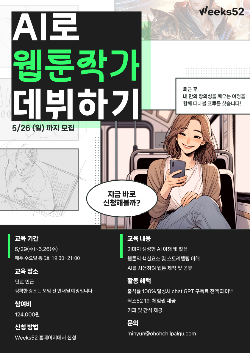 안녕하세요! Weeks52에서 AI 웹툰 그리기 첫 오프라인 클래스를 오픈했습니다🙋♂️