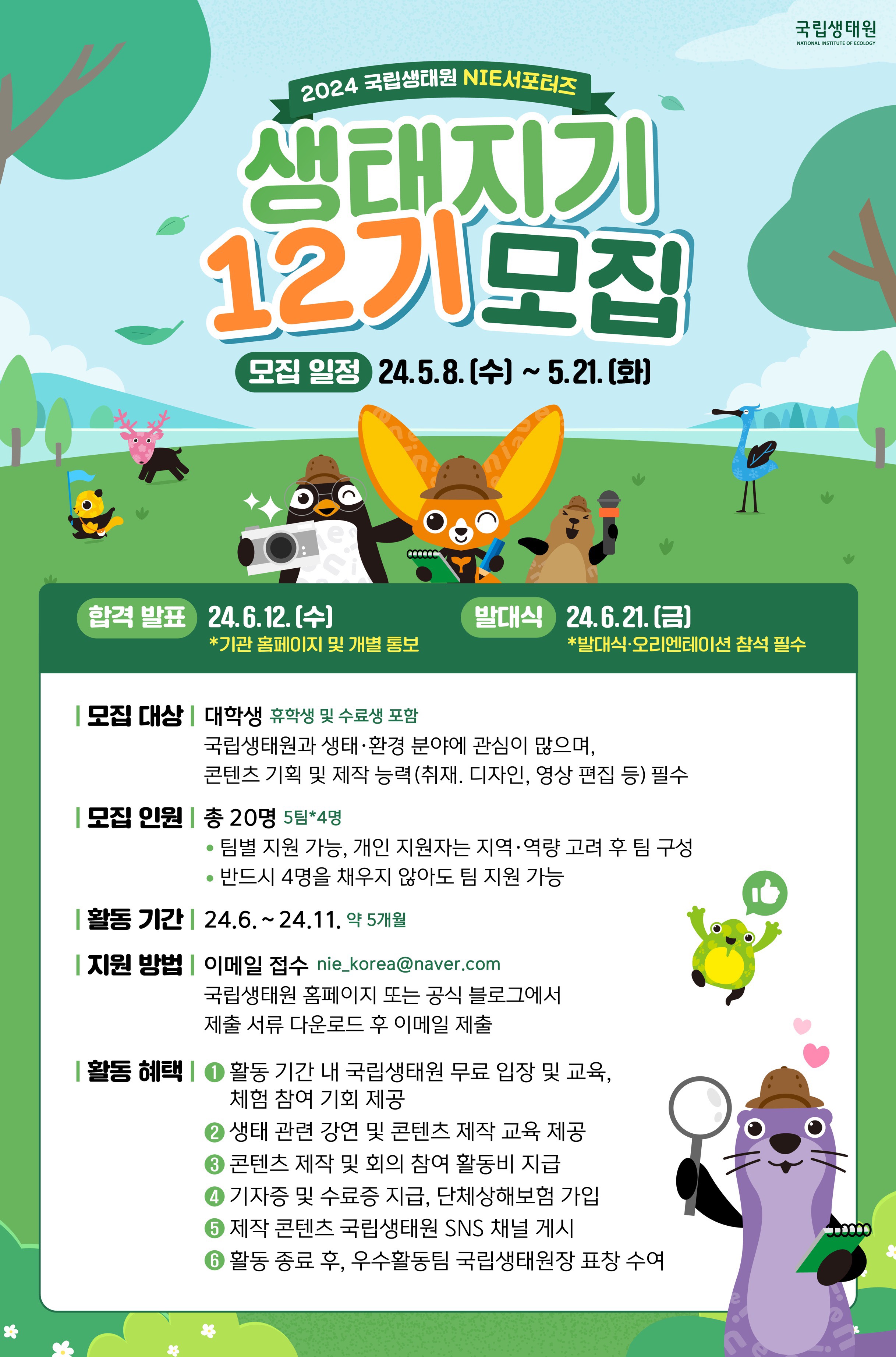 2024 국립생태원 NIE서포터즈 생태지기 12기 모집