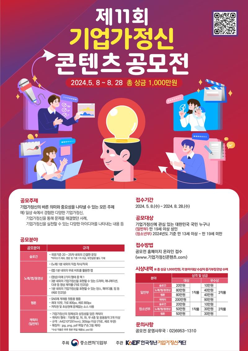 -(영상) 아래 2가지 형태 중 택 1 - 3분 내외의 기업가정신을 표현할 수 있는 드라마, 애니메이션, 다큐 등 영상 제작물 (가로 인코딩) -1분 내외의 기업가정신을 표현할 수 있는 댄스, 패러디물, 밈 등 (세로 인코딩) | |