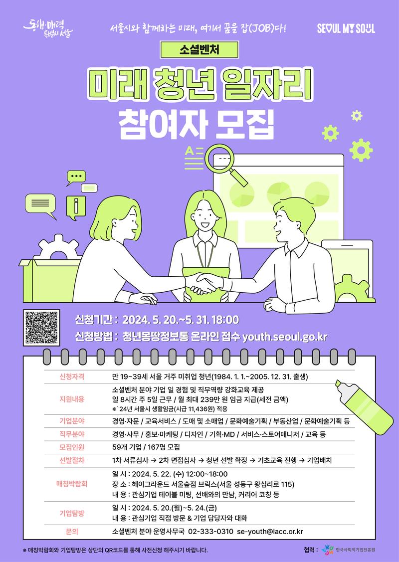 2024년 미래청년일자리사업(소셜벤처분야)에 참여할 청년을 모집합니다!