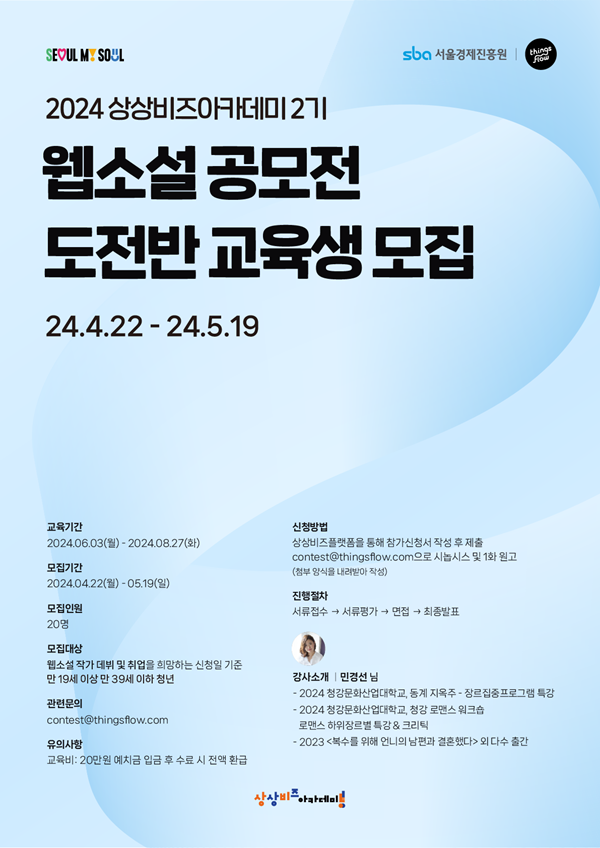 웹소설 작가 데뷔 및 취업을 희망하는 신청일 기준 만 19세 이상 만 39세 이하 청년