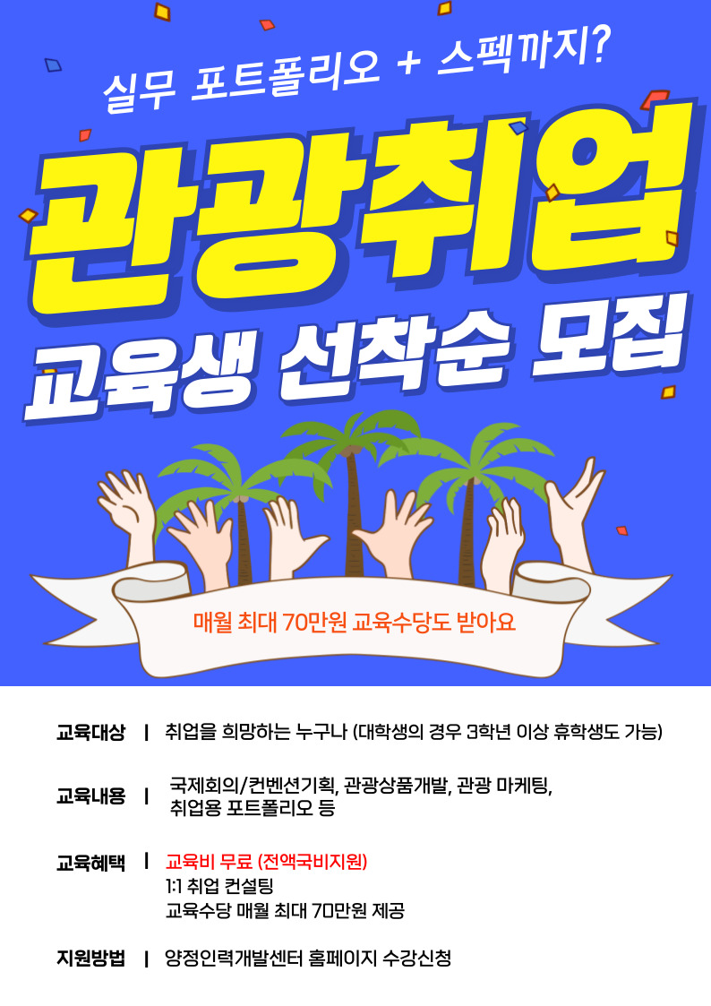 [선착순 추가모집] 높은 취업률! <관광분야>전액국비무료교육생 추가모집