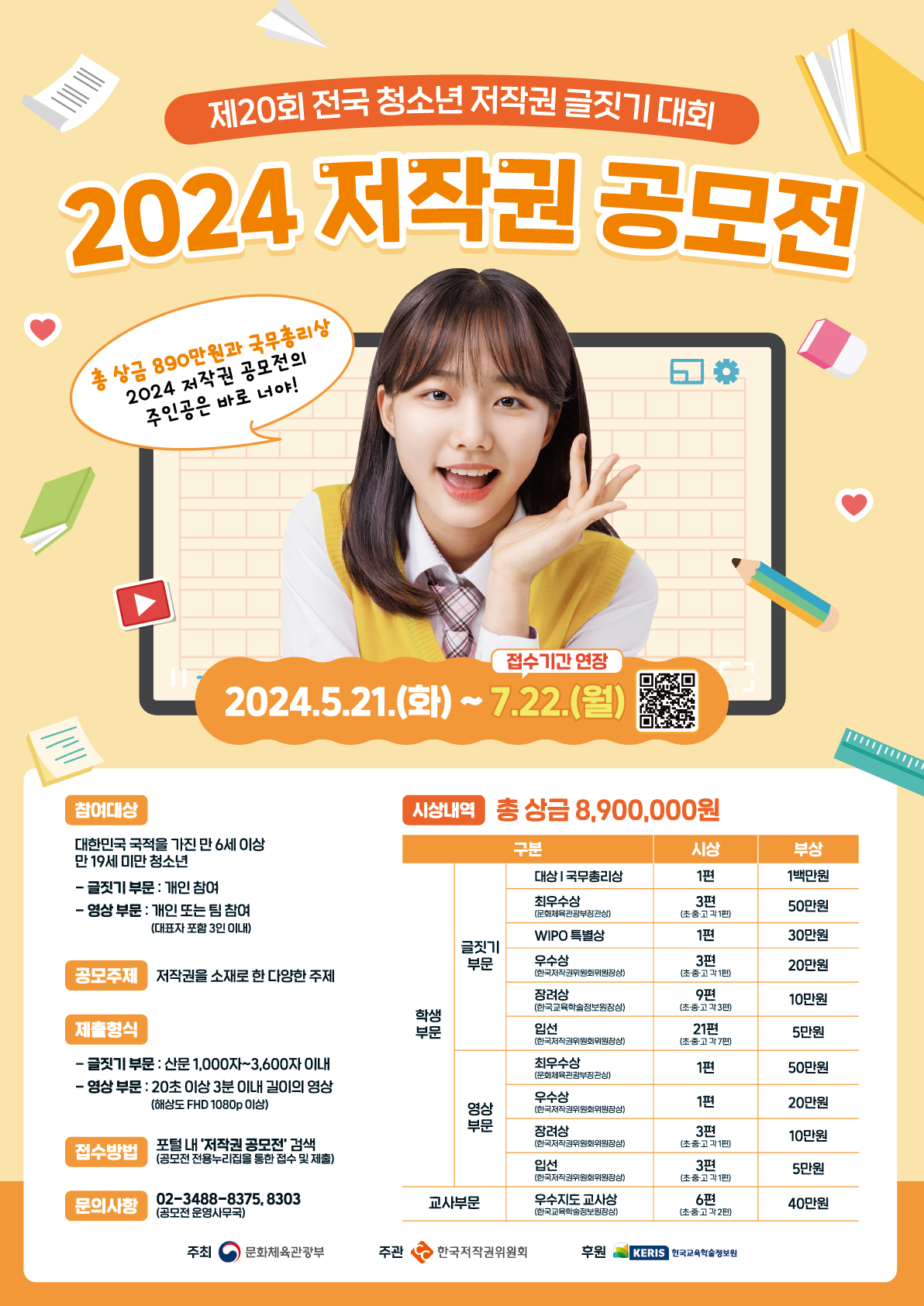 2024 저작권 공모전(제20회 전국 청소년 저작권 글짓기 대회)