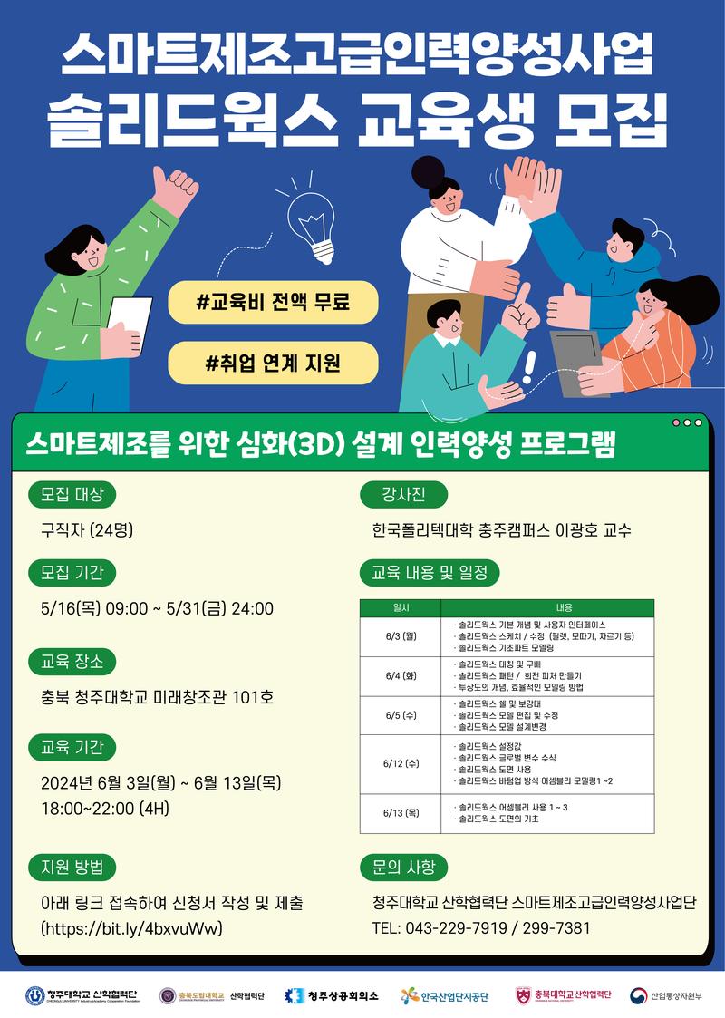 📢 문의처: 청주대학교 산학협력단 스마트제조고급인력양성사업단 / TEL : 043-229-7919, 299-7381