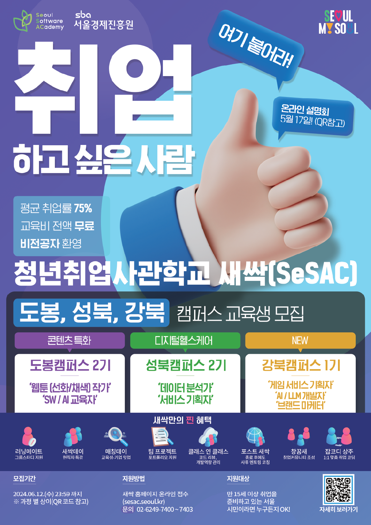 또는 새싹 홈페이지(sesac.seoul.kr) 들어가기!