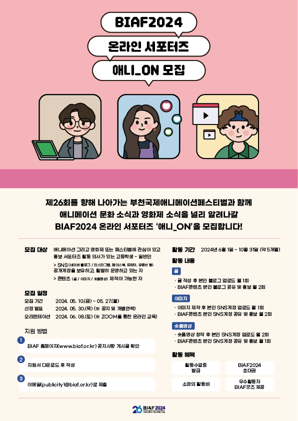 제26회 부천국제애니메이션페스티벌(BIAF2024) 온라인서포터즈 '애니_ON' 신청하기💙