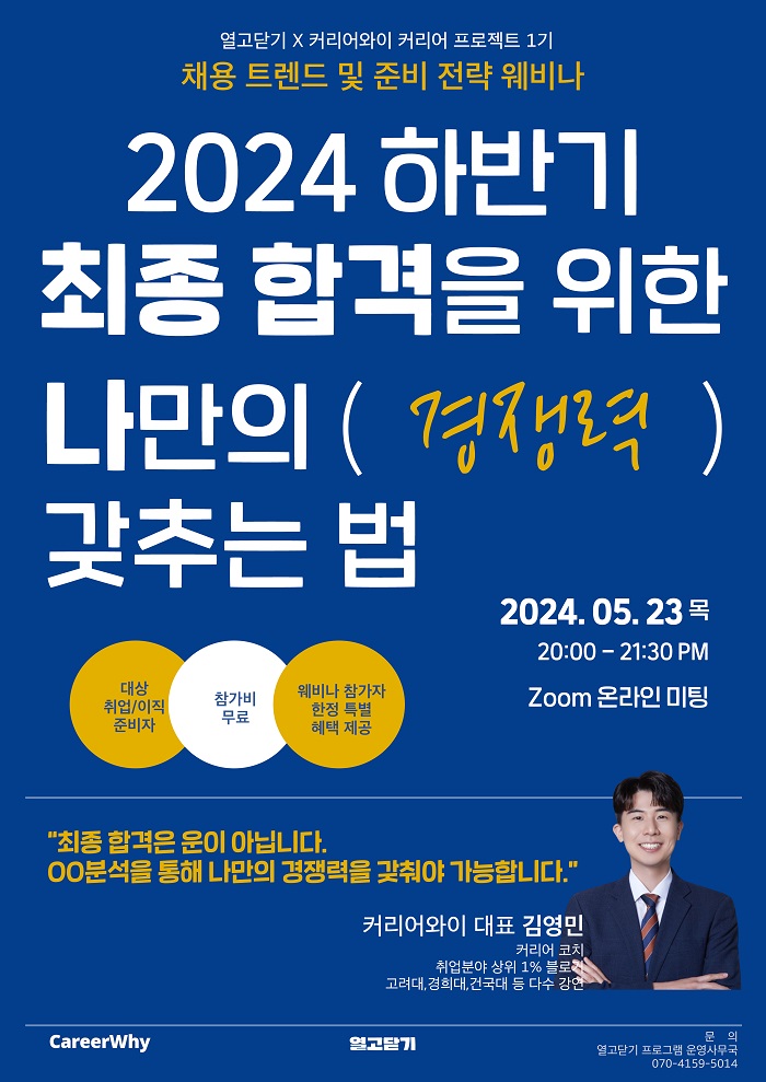 - 주제 : 최종 합격을 위한 ‘나만의 경쟁력’ 갖추는 법 (24년 하반기 채용 트렌드 및 준비 전략)