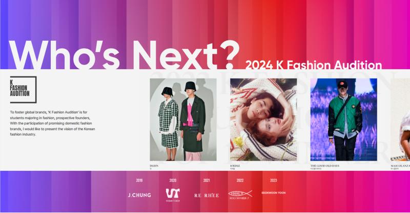특히 올해는 '국내 패션 디자이너 브랜드' 뿐만 아니라 '국내 중소·신진 패션 브랜드'로 대상을 확대하여 개최하오니 우수 패션 브랜드의 많은 참가 바랍니다.  □ 2024 K패션오디션 (제42회 대한민국패션대전)