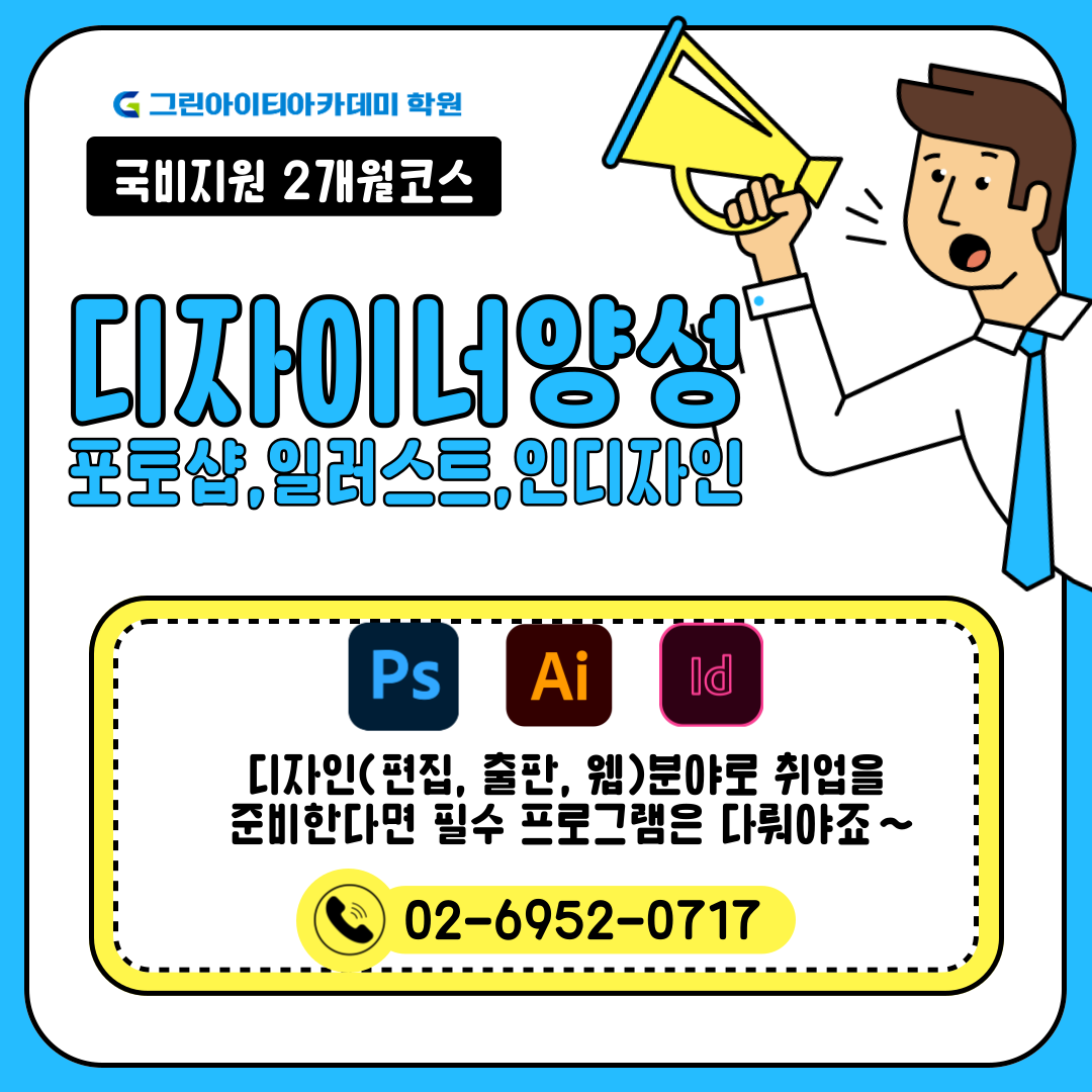 * 과정명 : 시각(편집)디자인(포토샵+일러스트+인디자인)실무+GTQ 자격증 취득과정